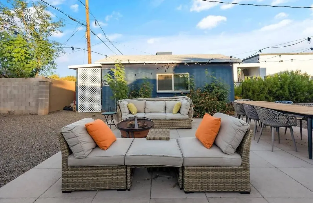 Quaint & Cozy 2-Br House Den And Study Fire Pit Villa Phoenix ligt op ongeveer 10 minuten met de auto van het Wrigley Mansion en nodigt gasten uit om te genieten van een zonneterras.